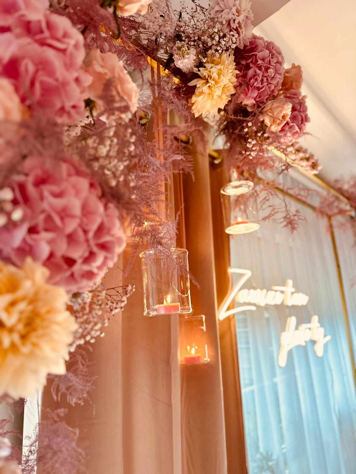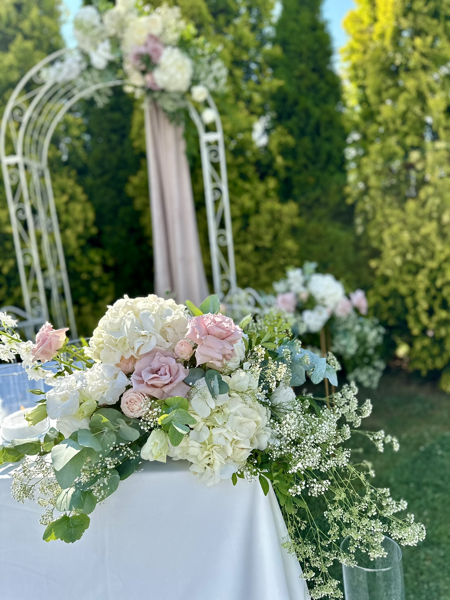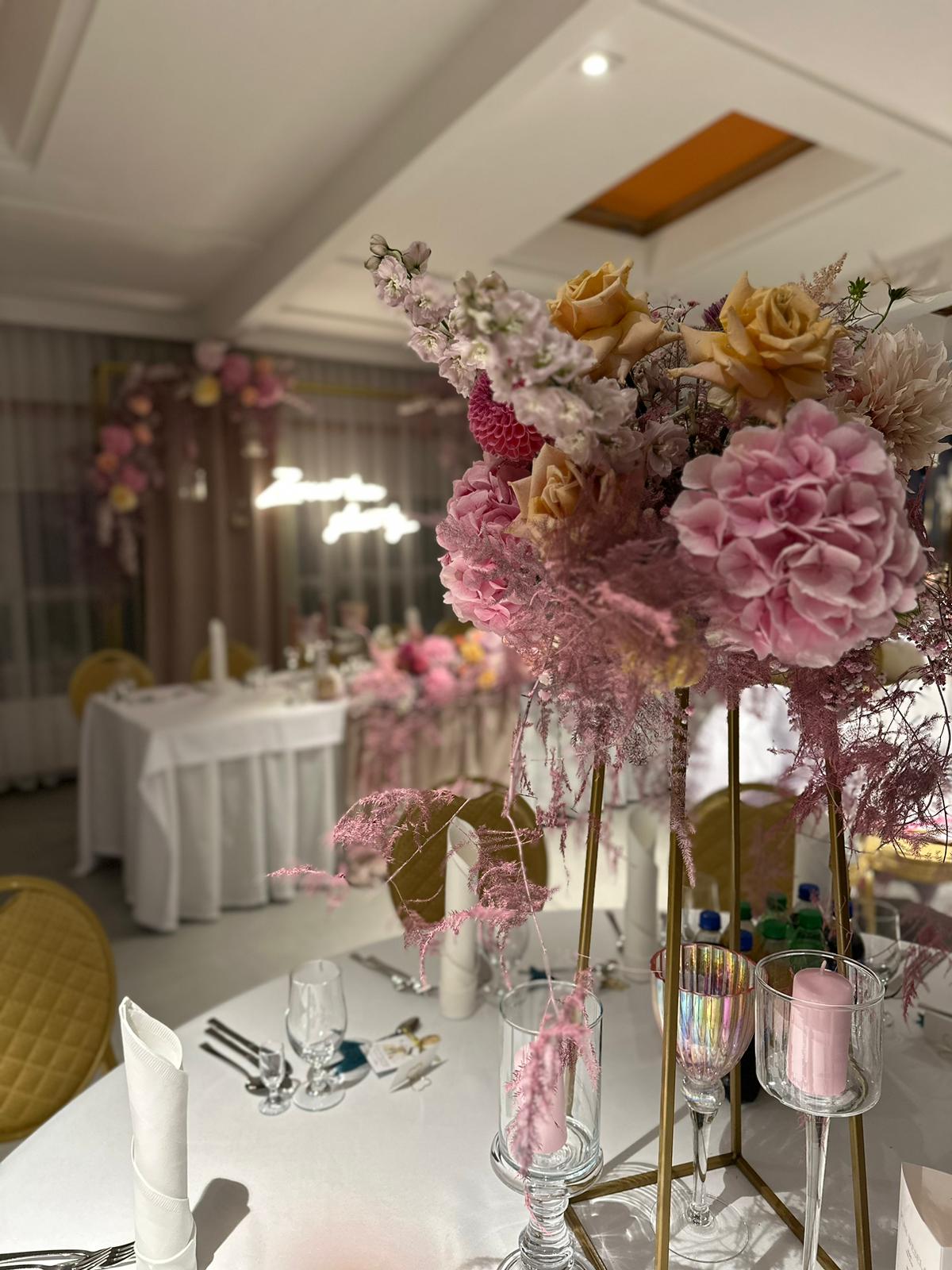 - Skomponujemy ściankę dekoracyjną do zdjęć, kwiatową pergolę i ozdobimy kwiatami słodki stół i inne miejsca na sali