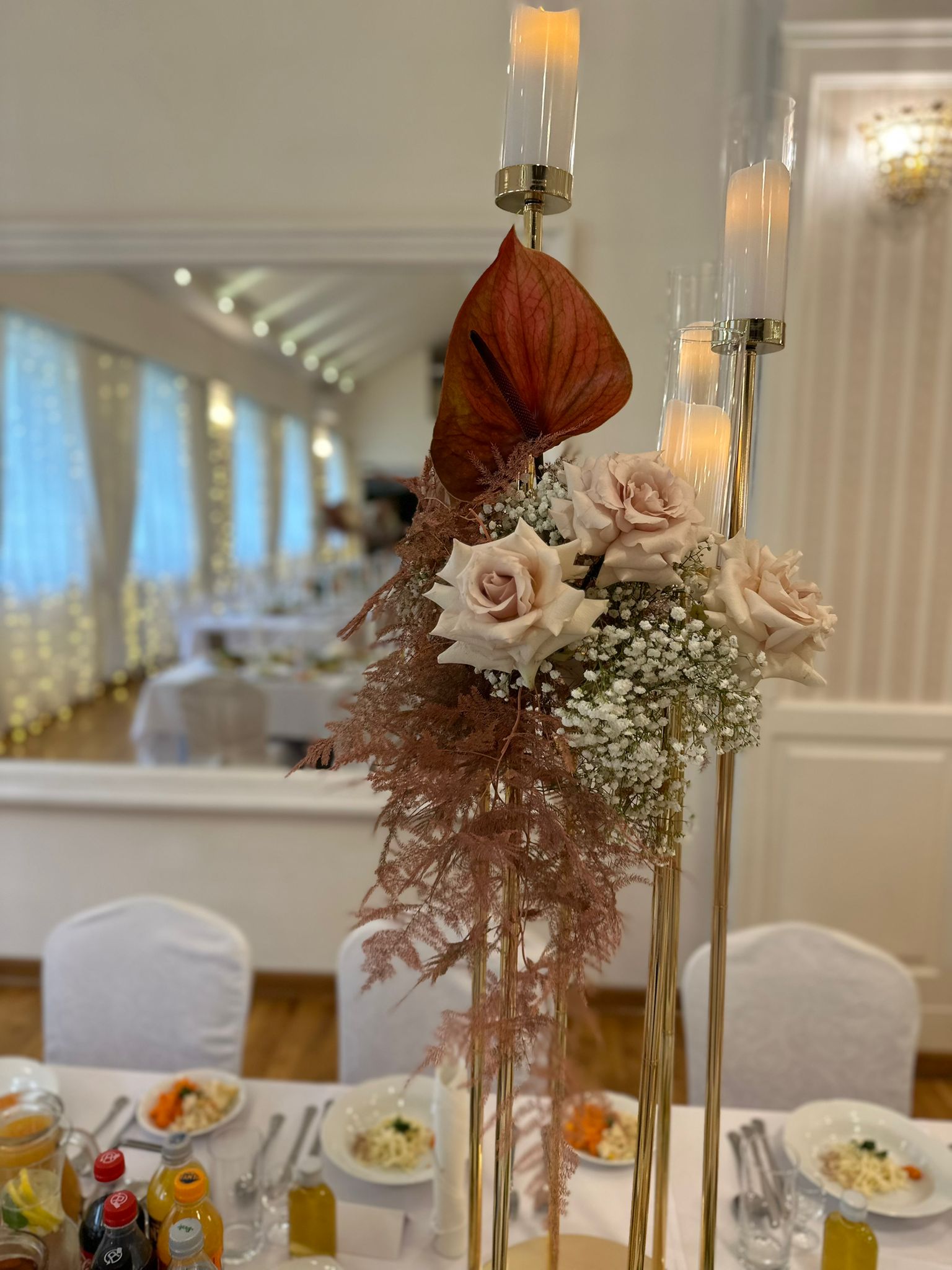 - Przygotujemy spektakularne kompozycje na stojakach, świecznikach, szkle lub w wazonach